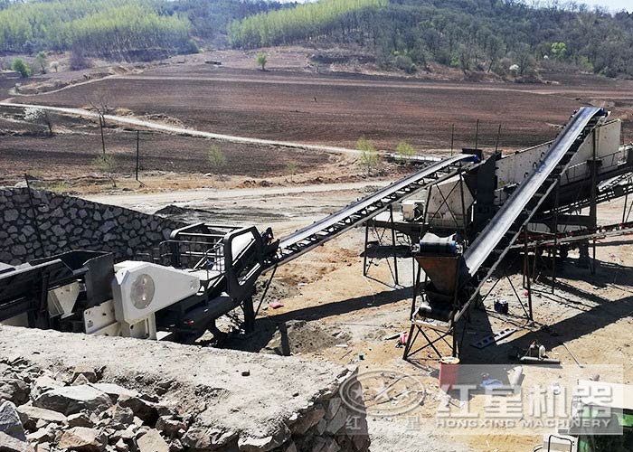 時產90噸流動一體式石子破碎機作業于遼寧/鞍山