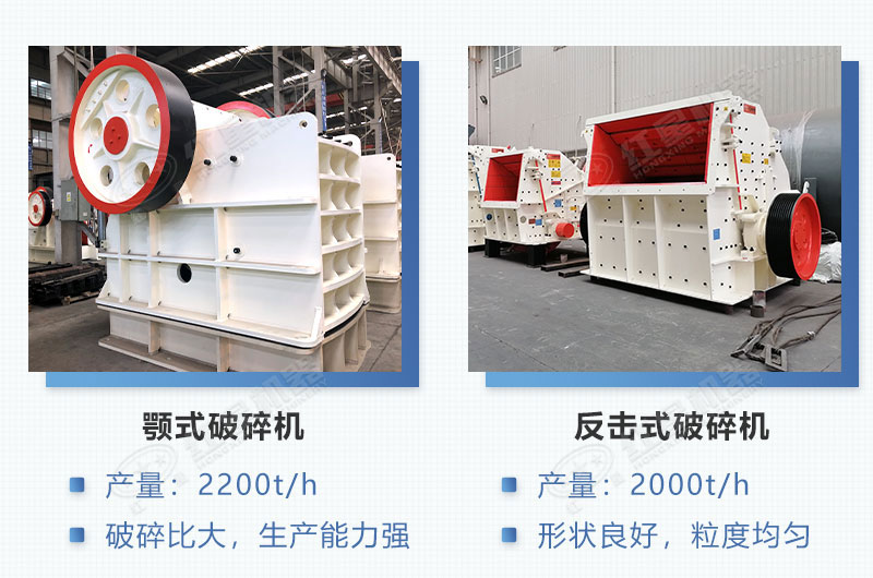 1、粗碎階段。一般使用顎式破碎機或重錘式破碎機(粗碎、中碎,一錘定型)