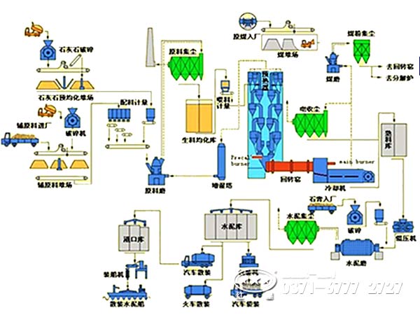 白灰回轉窯煅燒工藝可以分為濕法與干法,根據物料性質而選擇。通常多用濕法工藝。濕法回轉窯生產時在生料磨中加入水,將生料制成含水為3%5左右的料漿,經均化達到要求的料漿由窯頭喂料機送入窯內煅燒成熟料,出窯熟料經冷卻機冷卻,送入熟料庫,原煤經烘干兼粉磨成煤粉后再燃燒供給給熟料煅燒所需熱量。